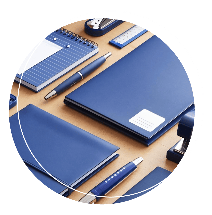 Eleva la tua professionalità con materiale da ufficio personalizzato. Dai blocchi note alle penne, rafforza la tua immagine, comunica il tuo valore.